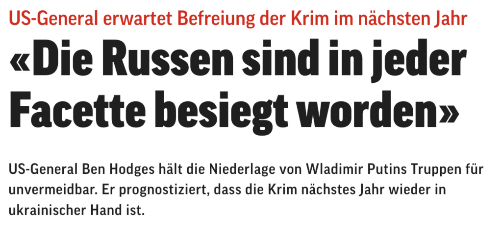 Generell stellt sich die Frage, wie die Führung der EU und ihrer Mitgliedsländer ihren Bürgern einen Frieden mit Russland erklären will, nachdem sie mit freundlicher Unterstützung ihrer Presse die Menschen in Europa jahrelang gegen Russland aufgehetzt hat und vor allem, nachdem ihnen unter diesem Vorwand ein nicht geringer Wohlstandsverlust zugemutet wurde.